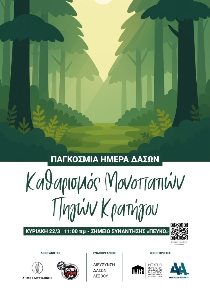 Η δράση διοργανώνεται με αφορμή την Παγκόσμια Ημέρα Δασών, που γιορτάζεται την προηγούμενη ημέρα, έχει ως σημείο συνάντησης την τοποθεσία «Πεύκο» (δείτε την τοποθεσία εδώ) στις 11:00 το πρωί και πραγματοποιείται με την υποστήριξη του Μουσείου Φυσικής Ιστορίας Απολιθωμένου Δάσους Λέσβου και της Ανακύκλωσης Αιγαίου.