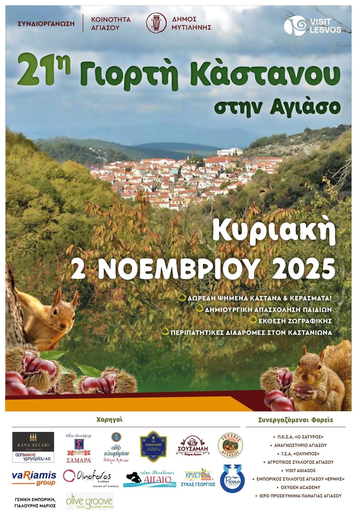 ΠΡΟΓΡΑΜΜΑ 🔸️10.30 Άναμμα φουφούδων 🔸️ 11:00-13:00 Βιωματικό εργαστήριο μαγειρικής για παιδιά (6-12 ετών - συνοδεία γονέων) με θέμα: «καστανοπταρέλια» (στη θέση Φολίδι) 🔹️11:00-14:00 Έκθεση ζωγραφικής στο Φουαγιέ του Αναγνωστηρίου Αγιάσου από το Παιδικό & Εφηβικό Εικαστικό Τμήμα Ζωγραφικής του Αναγνωστηρίου Αγιάσου 🔸️12:30 Μουσική συντροφιά με τα Σαντούρια του Αναγνωστηρίου στην Πλατεία Δημαρχείου 🔹️13:00 Περιπατητική διαδρομή […]